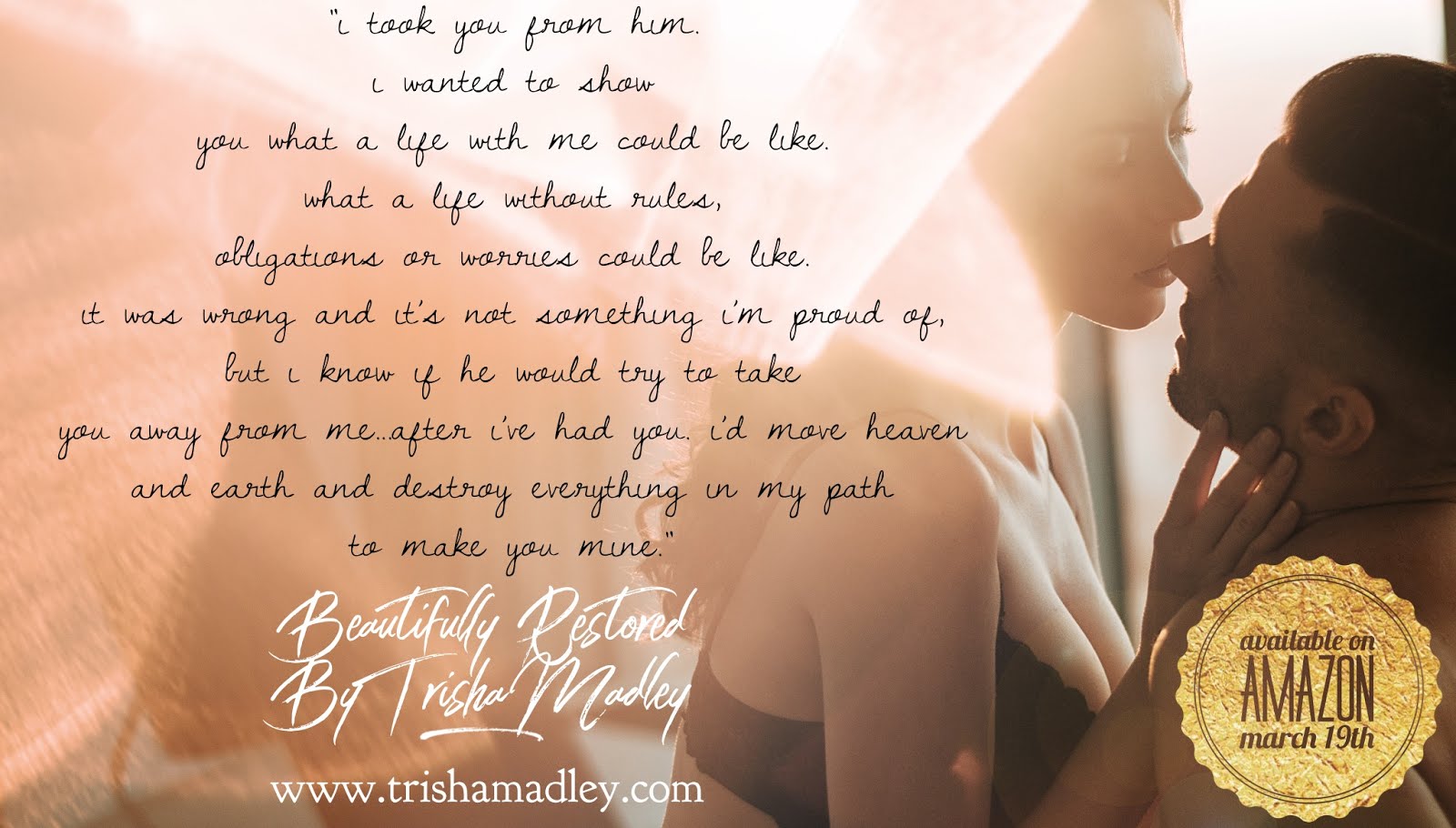 Emerson Dawson hates her life – more specifically – her marriage. Her husband, David, believes she’s the reason for his bad fortune. Because of her guilt, she accepts a punishment for his destructiveness, but gains an experience she never knew she needed – Babysitting a million-dollar car, along with the one-and-only mechanic who can fix it; Donovan Bradley.