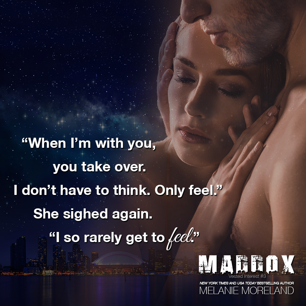 “I think you’re one of the sexiest men I’ve ever met, Maddox. I see how your toned body moves when you walk, and I imagine you moving in me. You use your hands a lot when you talk, and I want to feel them on my skin. Your muscles flex under your expensive suits, and I want to feel them tighten under my touch.” She ran her finger over her lips. “I want to taste you and watch you fall apart.”